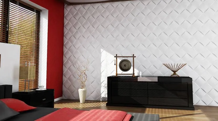 Белая 3д панель в спальной комнатеИсточник roomester.ru