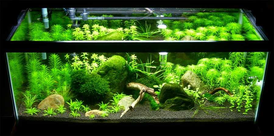 Грунт и растения подбирают в зависимости от видов рыбок.