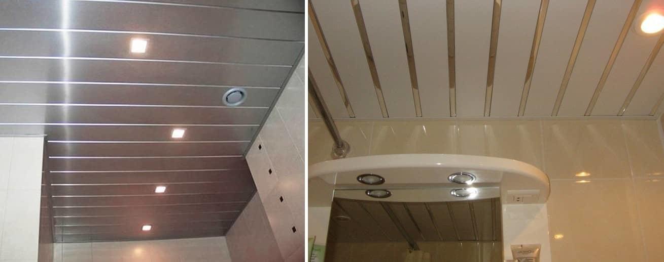 Алюминиевые панели реечных потолков также не чувствительны к влаге и частым перепадам температуры в ванной, но по прочности и долговечности превосходят пластиковую облицовку. Рейки из алюминия производятся толщиной 0,3-0,55 мм, по весу они мало отличаются от пластика, но имеют более чёткую геометрию профиля. Поэтому алюминиевые панели, покрытые декоративным слоем ЛКМ, выглядят эффектнее пластиковых реек. Алюминий не горюч, что является ещё одним преимуществом перед пластиком.