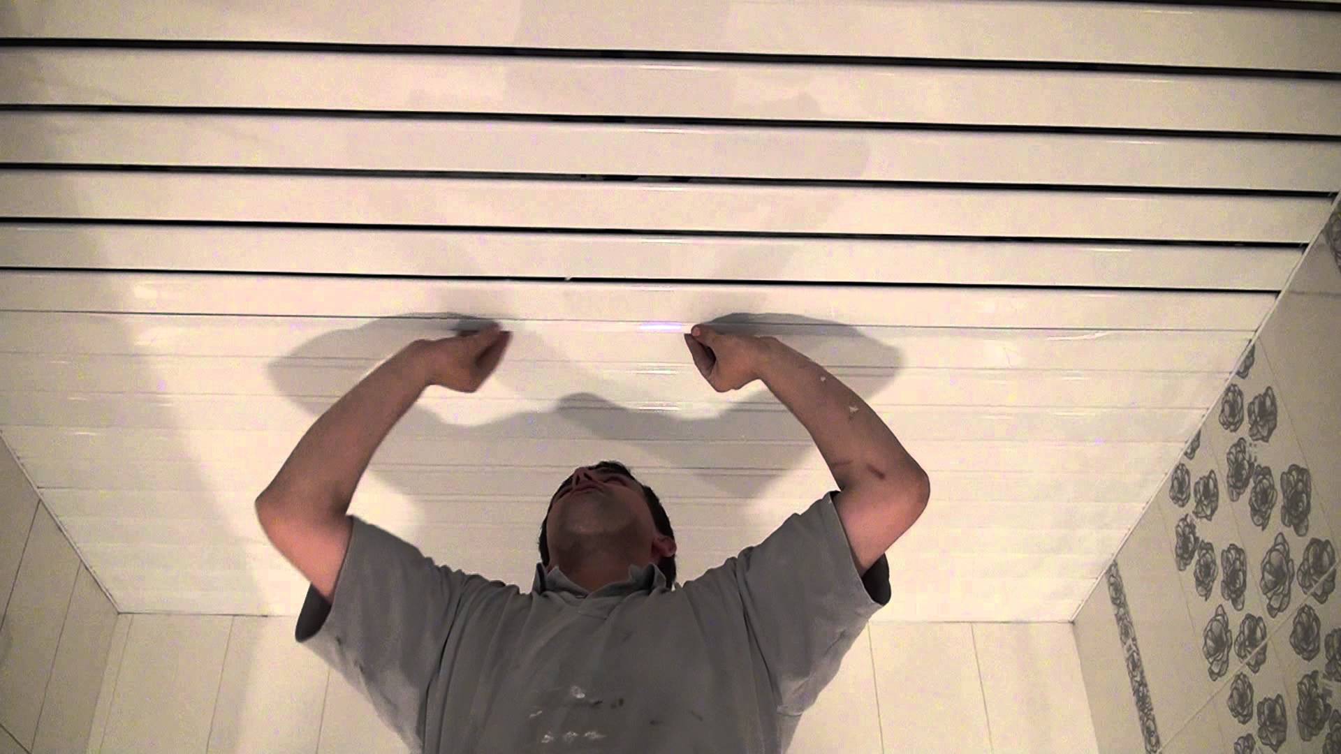 Пластиковые реечные потолки — самая дешёвая в группе разновидность облицовки, но она полностью отвечают требованиям эксплуатации в ванной. Панели из пластика лёгкие, хорошо моются, выпускаются в разнообразном декоративном оформлении, даже с зеркальным покрытием раскладки. Так как пластиковые рейки более гибки, чем металлические, при необходимости проще извлечь из покрытия один или несколько элементов для замены. Но этот материал раньше, чем металл, проявляет признаки старения – поверхность тускнеет, белые участки желтеют, и становится заметно, что облицовка потолка выполнена именно из пластика, отделки сравнительно непрочной и дешёвой. Средняя цена пластиковых реечных потолков составляет 150 руб./м2.
