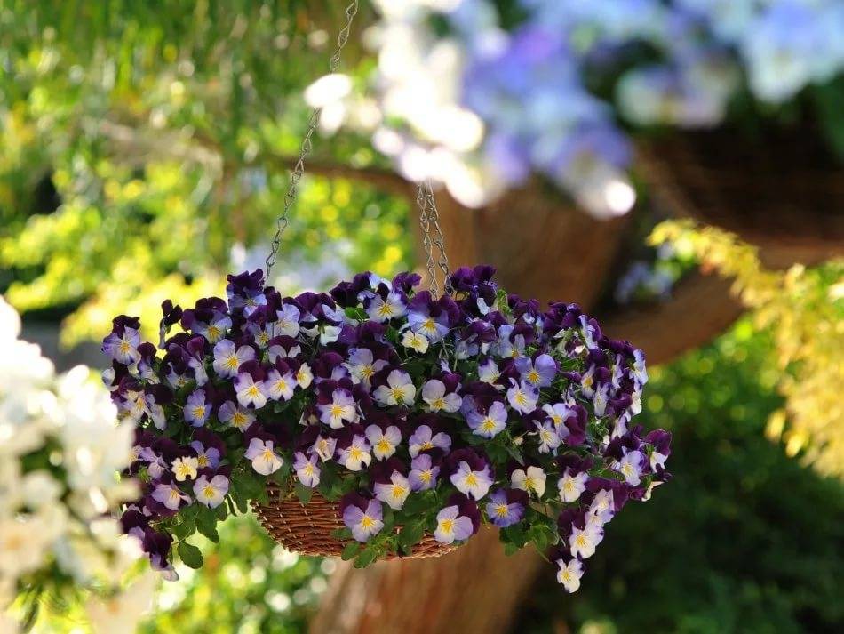 Виола прекрасно демонстрирует, что такое ампельные цветы
