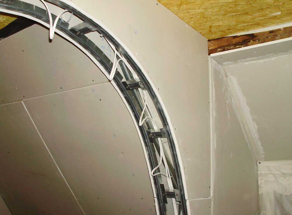 Процесс монтажа гипсокартонного арочного свода будет мало отличаться от создания любой другой каркасно-обшивной конструкции.