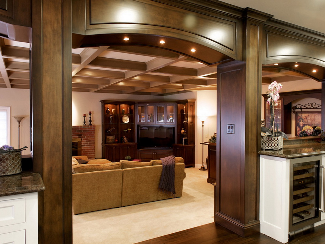 Не менее часто изготавливают декоративную отделки арки из древесины. Такой вариант весьма будет кстати для интерьеров в классическом стиле.Если вы не хотите по какой то причине устанавливать в проходе на кухню дверь, вам следует позаботиться об эстетическом оформлении этого прохода.