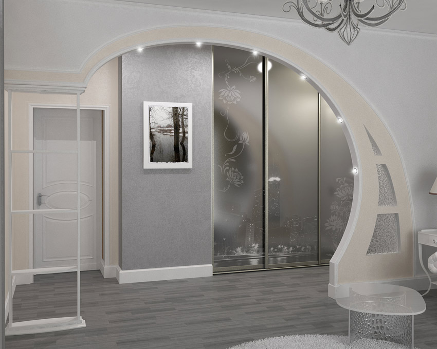 Чаще всего их изготовляют на основе гипсокартона. Из него проще вырезать нужную форму, к тому же, поверхность гипсокартона с легкостью красится, декорируется обоями или другими отделочными материалами, так что вы сможете придать арке желаемый внешний вид.