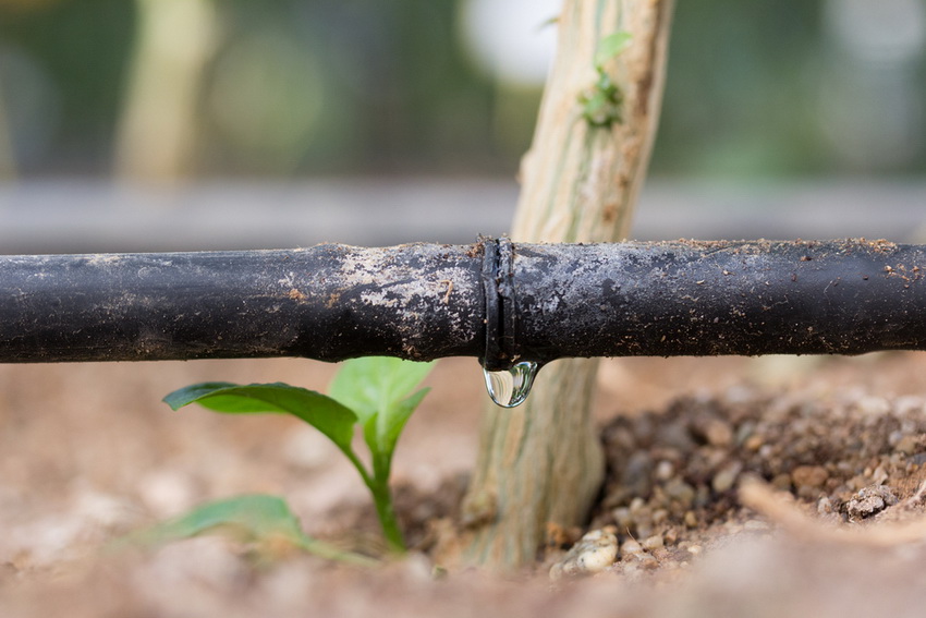 - Капельный полив подает воду к корням побегов, не орошая землю. Это позволяет избежать появления сорняков.