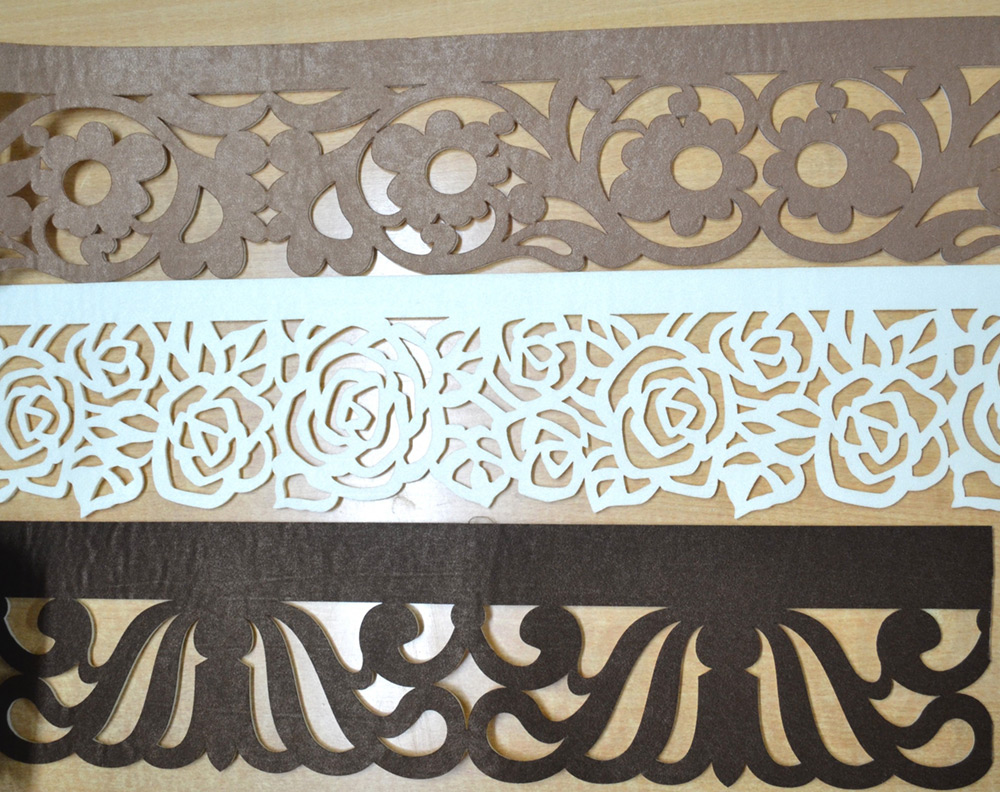 - Сделанный узор для ажурного ламбрекена перенести на основу и вырезать. Основа готова;