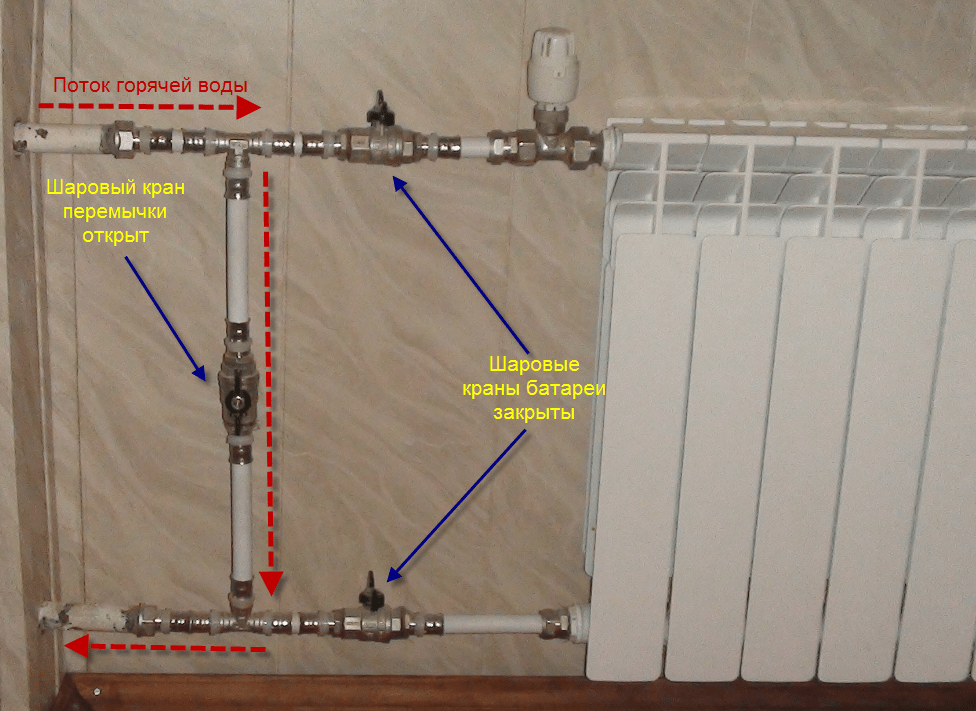 Байпас позволяет осуществлять ремонтные работы без слива теплоносителя