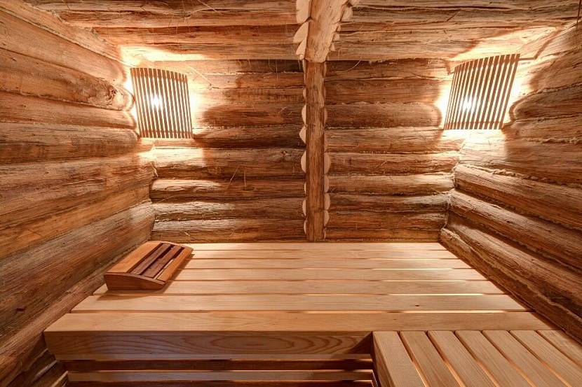 - В горячем воздухе бани хвойные брёвна начинают «плакать» — из них выделяется смола, которая быстро раскаляется и может стать причиной серьёзных ожогов. Поэтому стены рубленной из сосны или ели бани рекомендуют изнутри обшивать липовой или осиновой вагонкой.