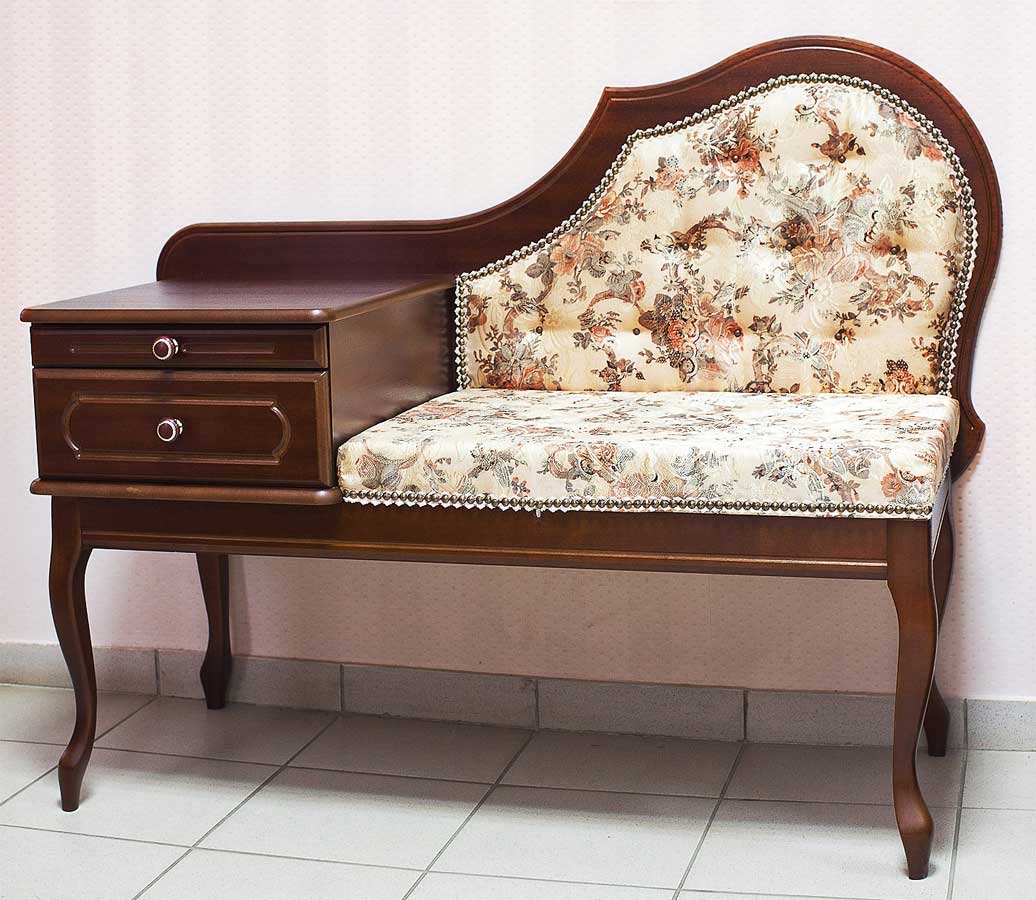 Декорированная резными ножками такая мебель станет дополнительным украшением помещения. А наличие полочки для обуви еще больше экономит ограниченное пространство. Кроме того, ее можно умело соединить с тумбой.