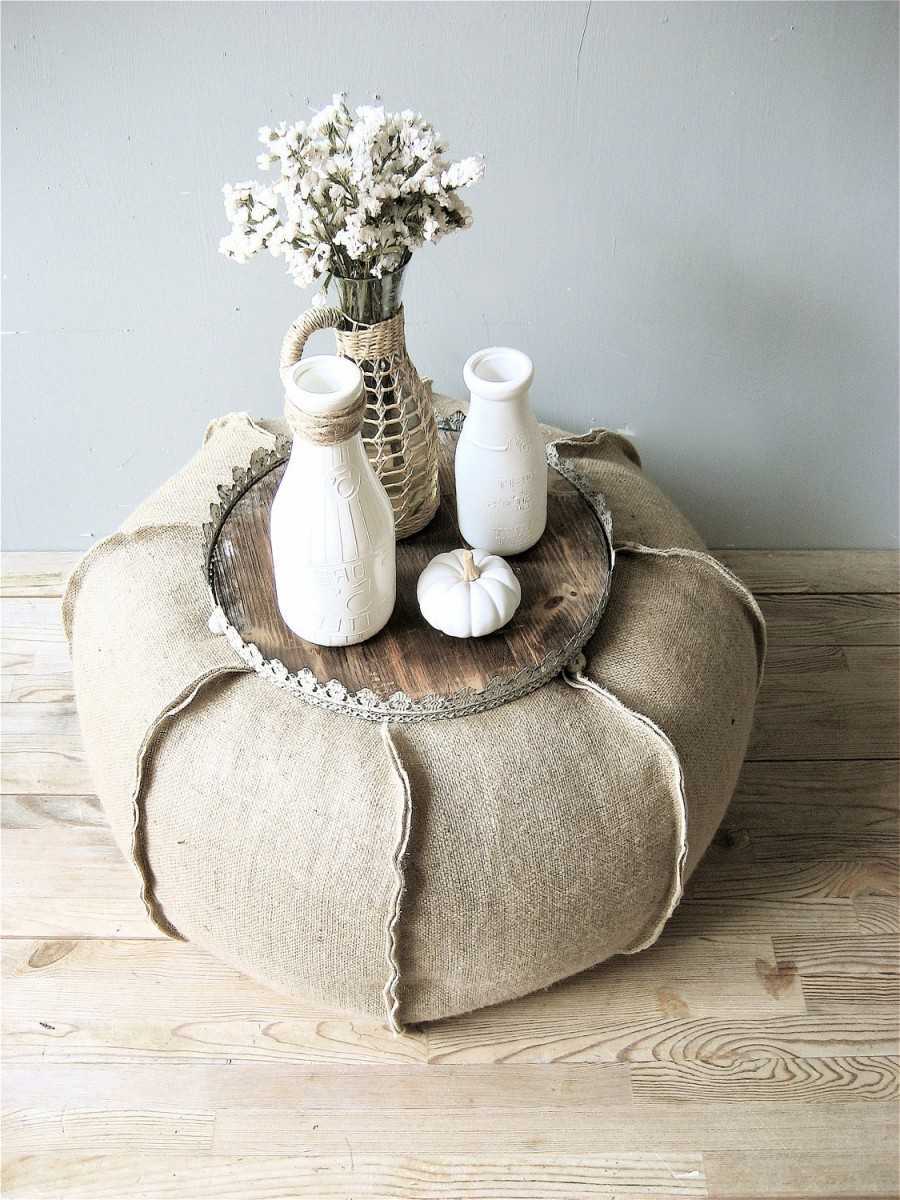Еще одно хорошее решение – использовать большой пуф как кофейный или журнальный столик, но тогда покрытие должно быть жестким.