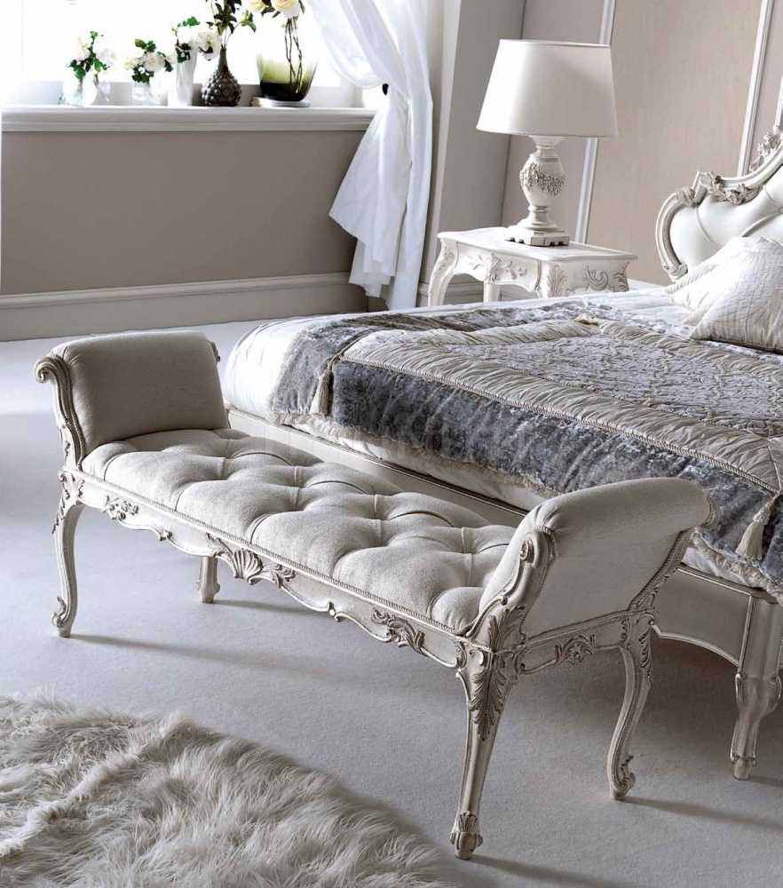 Классика более сдержана в своем разнообразии: прикроватный пуфик для спальни будет выполнен, используя однотонные пастельные тона, очень редко – клетку. Предпочтение отдается бархату и коже, а фактура деревянных элементов подбирается под окружающий дизайн.