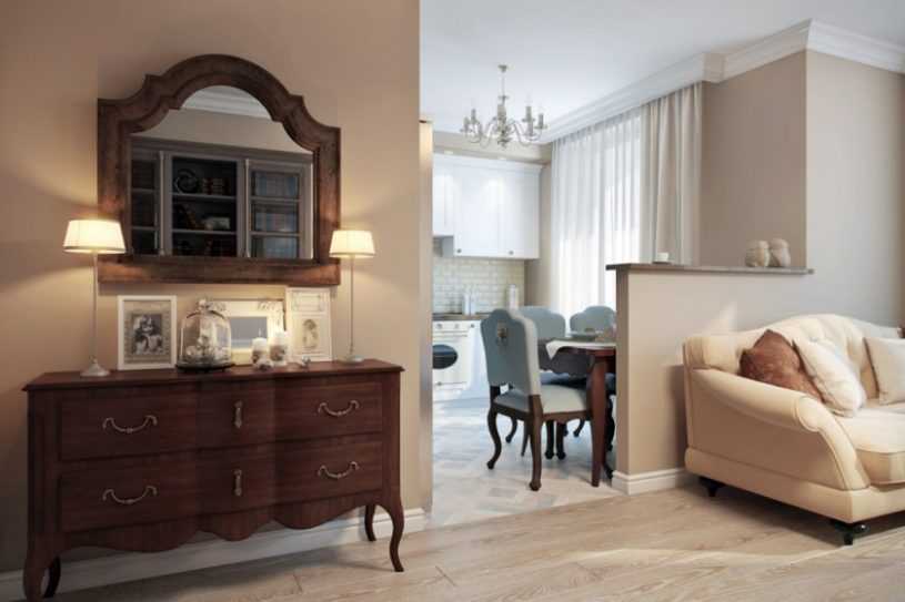 При оформлении кухни-гостиной в классическом стиле выбирайте не больше 2-3 цветов. Это позволит не перегрузить интерьер и сохранить чувство стиля.