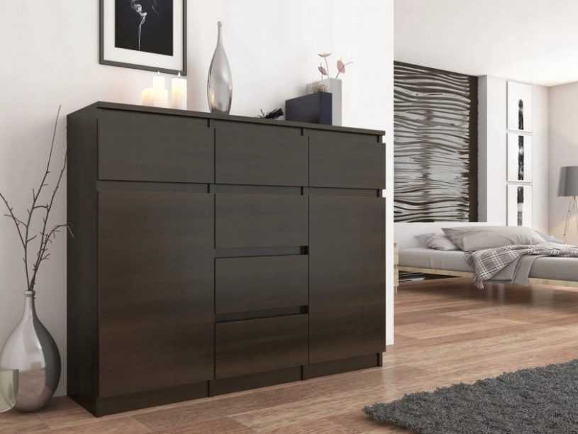 В остальном, оснащение тумбы будет довольно стандартным. Различные комбинации полок с ящиками. Что в них хранить решайте сами. Встречаются модели с бельевыми отсеками, журнальными полками или мини баром.