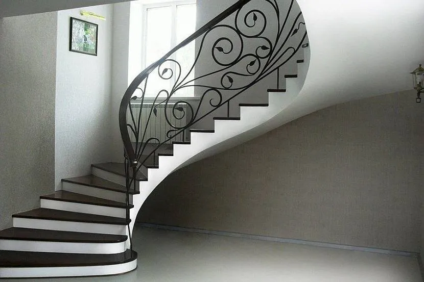 Можно «поиграть» и с перилами – допускаются самые сложные формы: