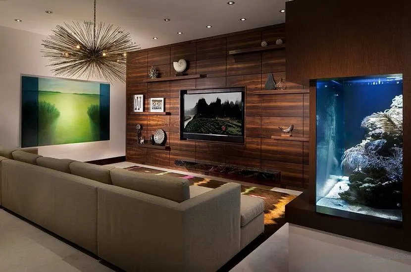 Современный дизайн помещений обычно предполагает простые и функциональные решения. Это низкая мягкая мебель, стены без лишних узоров, минимум декора. Такие стили реализуют с помощью удобной меблировки: современную комнату снабжают комфортными диванами с низкой спинкой, широкими бильцами, несколькими диванными подушками.