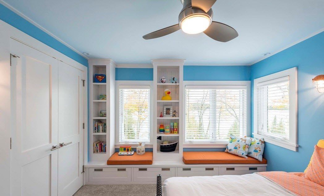 Учитывать нужно и возрастные особенности: если в комнате малыша нужна кроватка с обрешеткой, пеленальный столик и небольшой шкаф для хранения игрушек, то по мере взросления этот комплект изменяется на кровать, столик и стульчик для творческих работ, требуется больше места для хранения не только игрушек, но и книжек. Обустраивать комнату для ребенка дошкольного возраста и младшего школьного возраста – само удовольствие, так как можно пофантазировать, и самые обычные предметы превратить в элементы сказки: места хранения сделать сундуками, шторы – в виде паруса, или же использовать в оформлении сюжет любимой сказки, мультфильма.