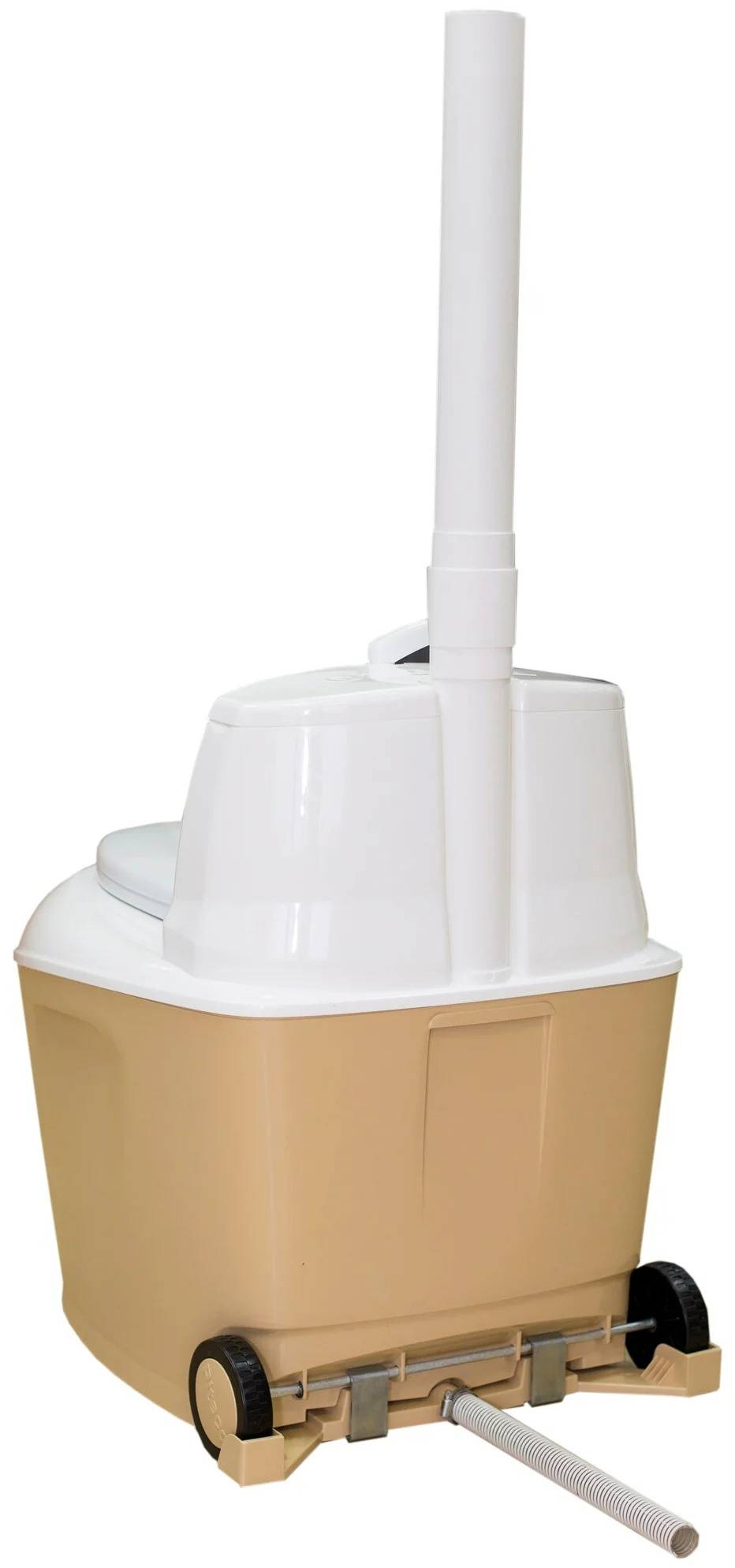 Торфяной биотуалет с системой вентиляции, исключающий появление неприятных запахов. Для этого достаточно установить 2-метровую трубу (идет в комплекте) и дренаж для отвода жидких остатков. При необходимости трубу можно удлинить. Модель предназначена для стационарной установки как в помещении, так и на улице. Монтаж устройства простой, т.к. на дне нижней части есть отверстия под саморезы.