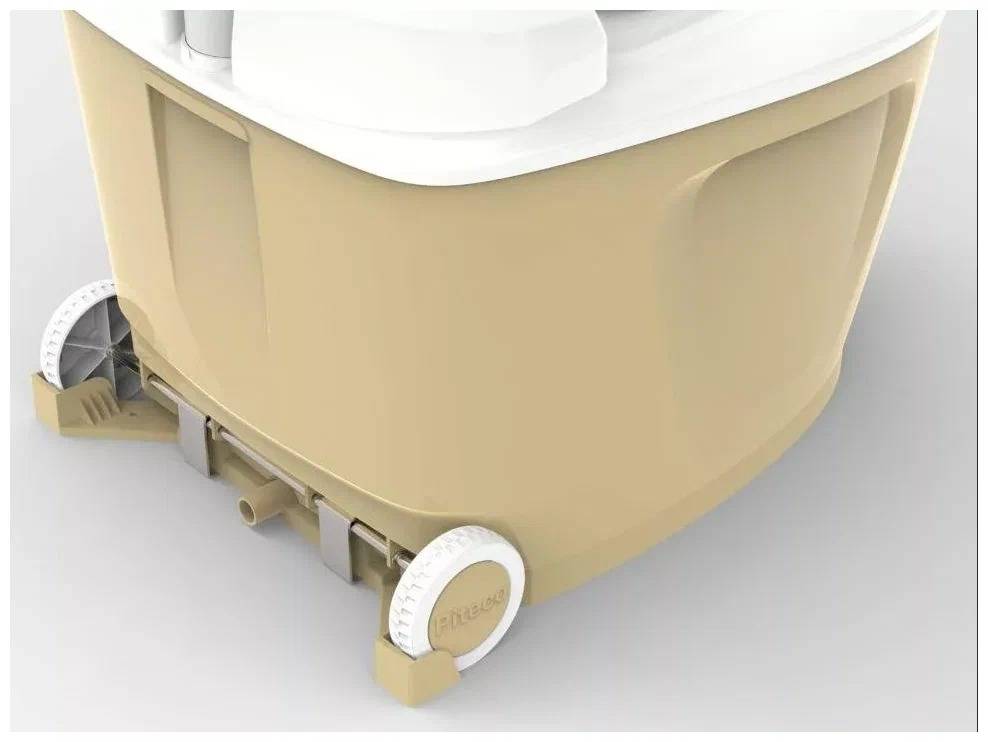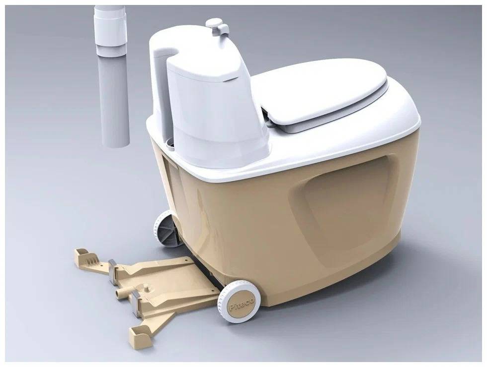 Торфяной туалет PitEco 905 — вместимость до 140 литров, для удобной транспортировки накопитель укомплектован колесиками. Может использоваться как в доме так и за его пределами. Оснащен шлангом для дренажа и вентиляционной трубой (75 × 1820 мм ).