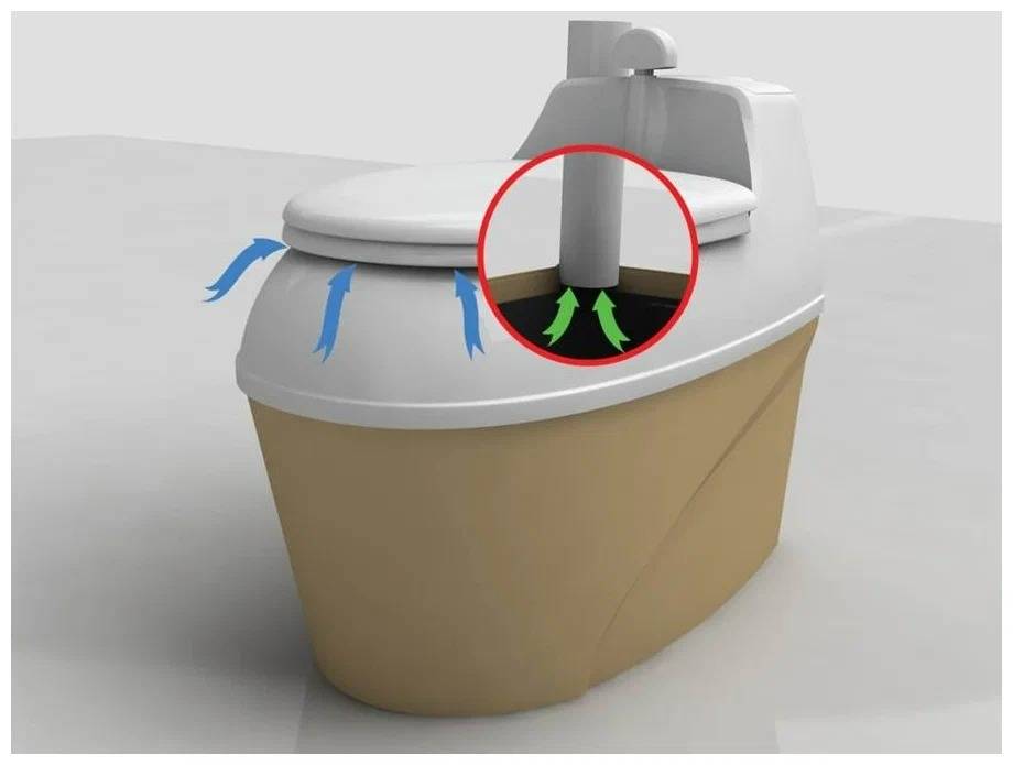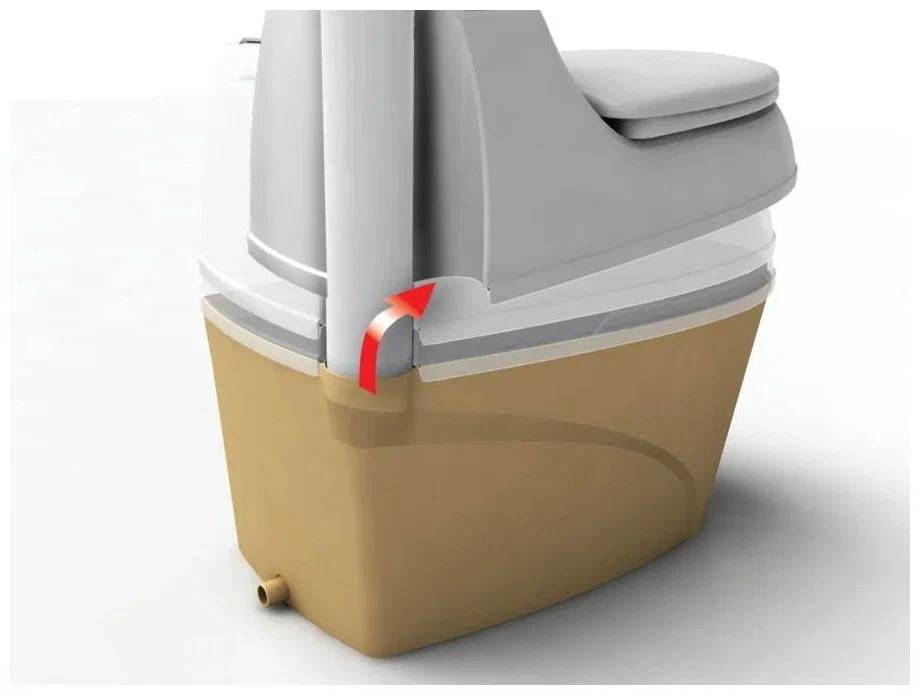 Некоторые модели оснащены раздельными емкостями. В одну поступает жидкость, которая через шланг выводится на почву или в канализацию. Другой резервуар заполняют твердые отходы, где они компостируются.