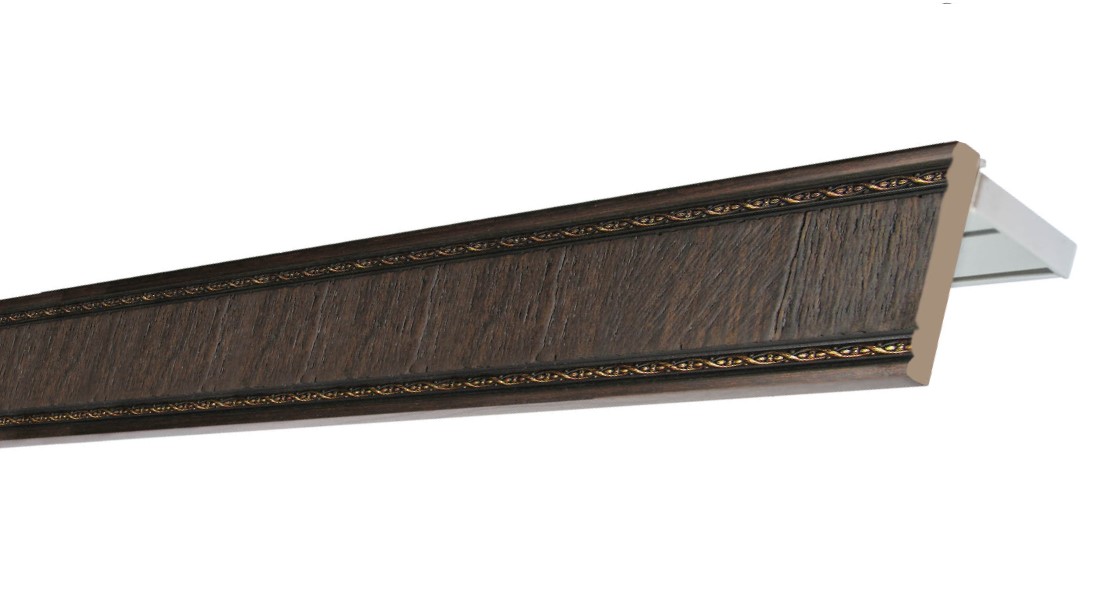 Древесина – наиболее распространенный материал, ее украшают цветным, лессирующим или прозрачным лаком. Как правило, для изготовления карниза используют цельные материалы, МДФ, фанеру и прочее. Внутри, деревянные багетные карнизы для штор содержат металлические планки.