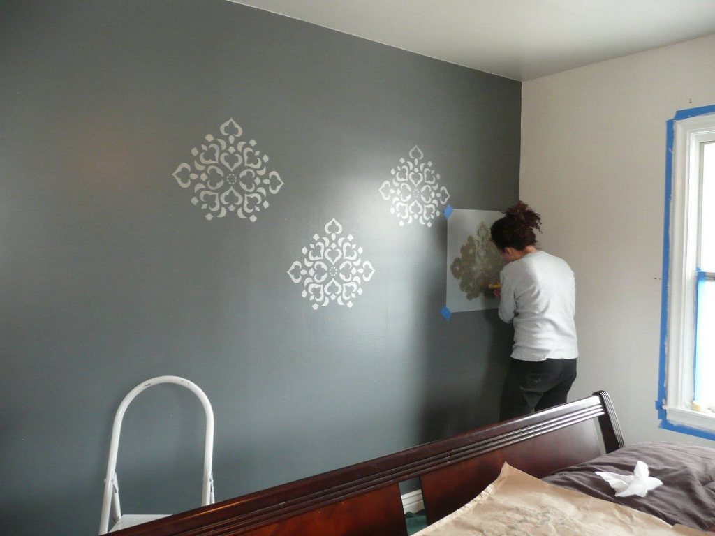 - Использование трафаретов. Наиболее простой и доступный каждому метод. С помощью трафаретов на поверхности создаются необычные орнаменты.
