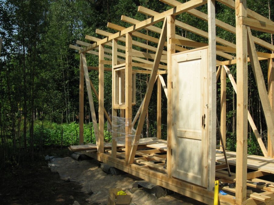 Остановимся подробней на возведении деревянной каркасной вариации. По сути, это самое распространенное строение при самостоятельном исполнении домика под названием «бытовка».