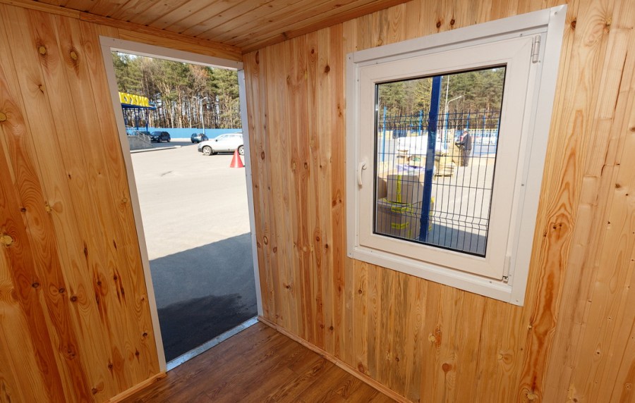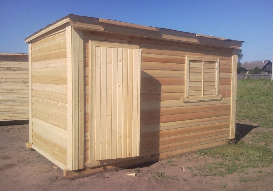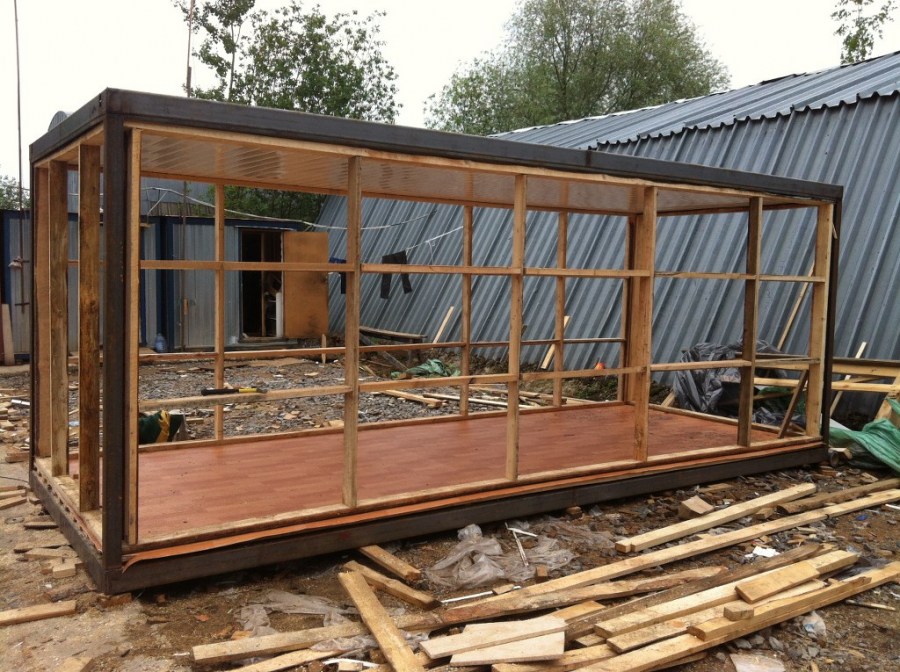 Строение представляет собой каркас бытовки из дерева, снаружи отделанный вагонкой, блок-хаусом. Внутри стены обшивают листами ДСП, ОСБ, толстой фанерой.