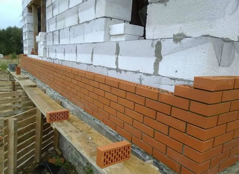 - Защита и утепление. Кирпичная кладка — надежный способ защитить пенобетон от любых природных осадков и температурных колебаний.
