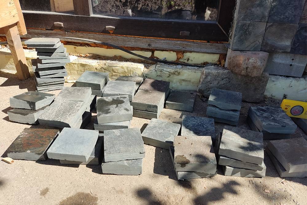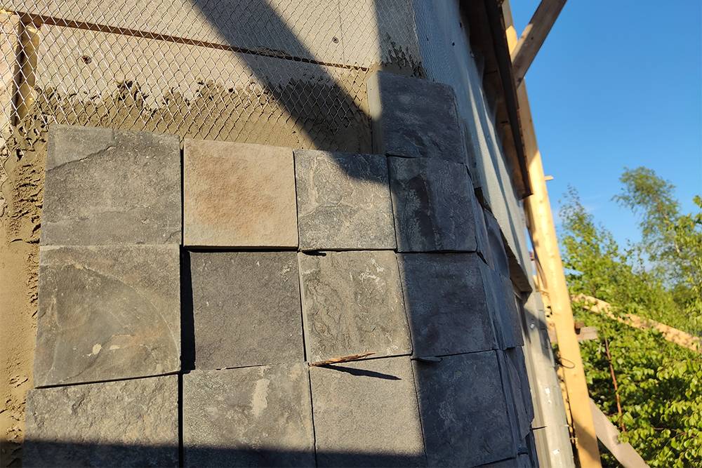Натуральный камень нам предложил уложить рабочий из Узбекистана — он пришел сам, когда увидел, что мы завезли материал. Рабочий назвал стандартную цену 1500 Р за квадрат, но я сбил ее до 1300 Р. За отделку 8 м² эркера камнем должно было выйти 10 400 Р. Мы ударили по рукам.