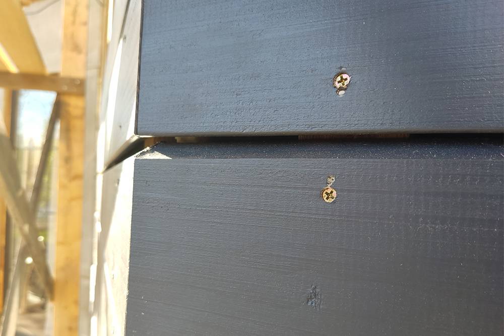Особо радует, что монтаж фасадных моделей происходит в любую погоду без подготовительных манипуляций. После обустройства обрешётки начинается сцепка саморезами. Главное, следовать рекомендациям и оставлять нужные зазоры, чтобы стенки не «поплыли».