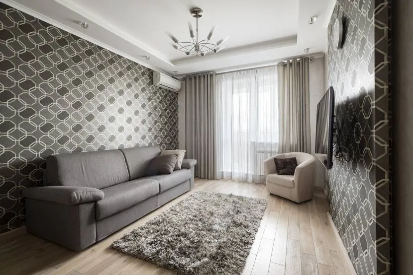 Серые обои и занавески в гостинойИсточник freelancejob.ru