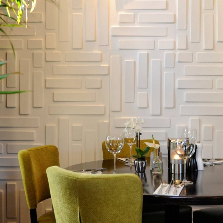 Крайне важно выделить для плит с рельефом определенный участок стены, оправданный с точки зрения функционального зонирования и декоративной нагрузки. «Акцентной стеной» может стать изголовье кровати, область установки телевизора, каминная или столовая зона