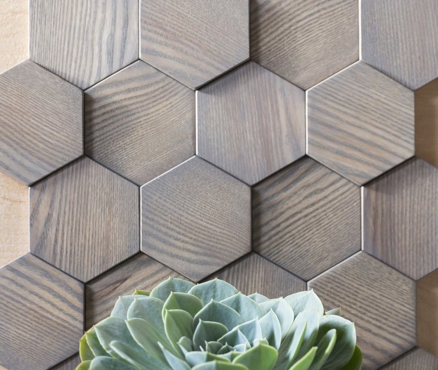 - 3D панели, имеющие разные формы и фактурный рисунок, собранные из реек, досок.