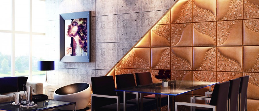 Ассортимент декоративных стеновых панелей очень широкий: множество расцветок, текстур, рельефов, включая объемные 3D-рисунки и узоры. Правильно подобранный вариант придает интерьеру современный и оригинальный вид, выгодно подчеркивая ту или иную часть помещения. Лучше всего панели смотрятся в сочетании с другими типами отделки – комплементарными по оттенкам и фактуре обоями, однотонным окрашиванием, кирпичной кладкой.