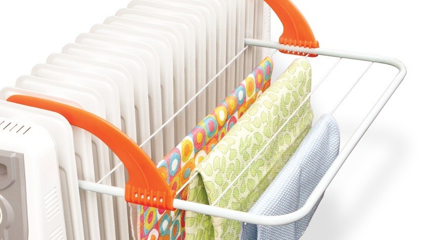 Можно сушить постиранную одежду и на лоджии. Однако подышать свежим воздухом там не получится, пока помещение занято. В случае балкона бельё можно вывесить за его пределы с помощью соответствующего приспособления. Совсем небольшую сушилку несложно устроить на батарее, где можно быстро высушить детские принадлежности или носки.