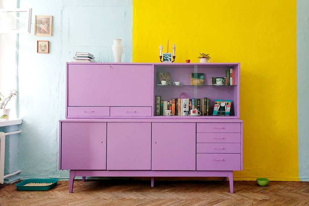 Одна баночка на 0,9 л обошлась в 429 Р, и еще 23 Р стоила колеровка каждой баночки в нужный цвет. Всего мне понадобилось три баночки — одна серого цвета и две лилового. То есть на краску для мебели я потратила 1356 Р.