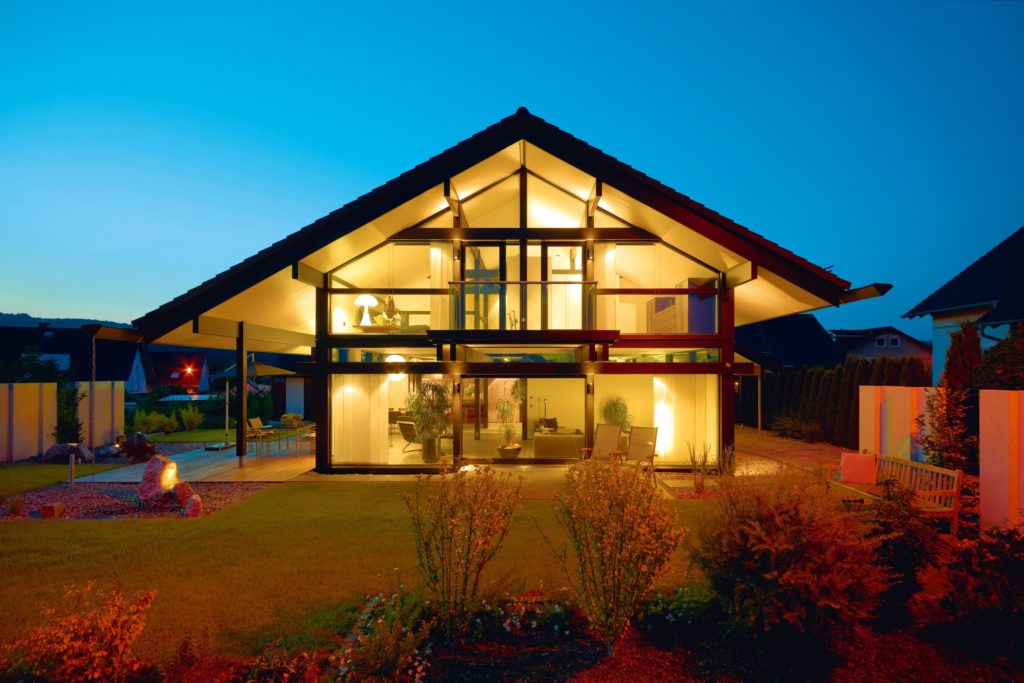 Стеклянный дом фахверк насыщен светом, что благотворно сказывается на здоровье и настроении его жителей. Существует еще один современный материал, используемый для заполнения стен дома фахверк – это цементно-стружечные плиты (ЦСП). Что это? Он представляет собой прямоугольный лист, сделанный из портландцемента и древесной стружки. В него добавляют специальные химические составы, защищающие от плесени, грибка и влаги. ЦСП обходится сравнительно недорого, притом, что обладает отличными звуко- и теплоизоляционными свойствами. У материала низкая прочность на изгиб, однако, он прекрасно выдерживает продольные нагрузки. А это дает возможность усилить каркас. Газобетон тоже экономичен, он очень удобен в отделке, обладает высокими теплоизоляционными характеристиками.