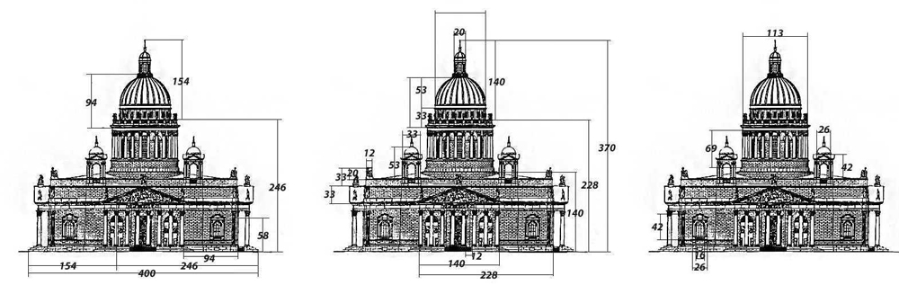 - основная часть собора вписывается в золотой прямоугольник, длинная сторона которого равна 400, ширина – 248.