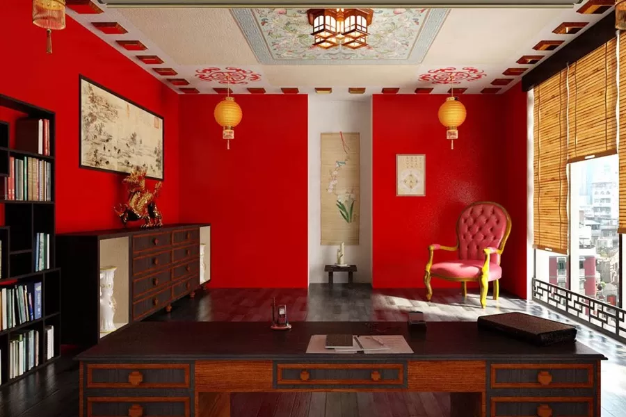- Обои красного цвета подойдут с южным местоположением спален, хотя этот цвет Огня нужно применять и в других случаях, в китайской философии он оказывает благотворное влияние на семейные отношения.