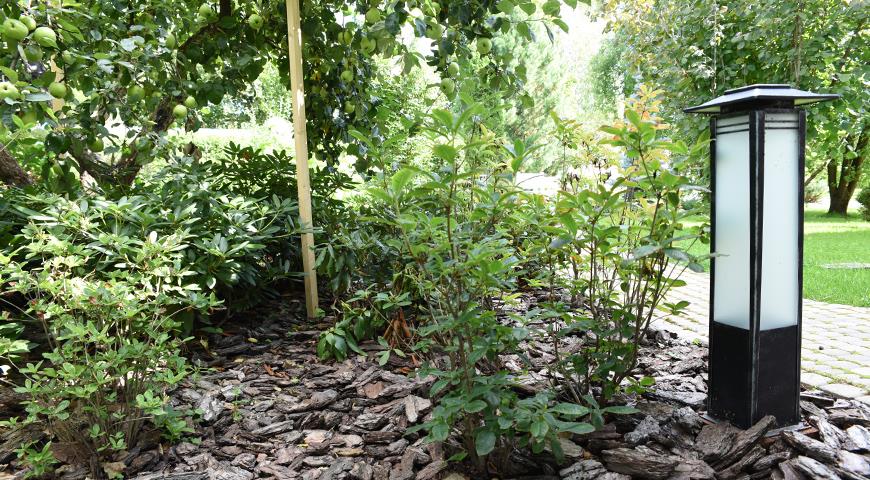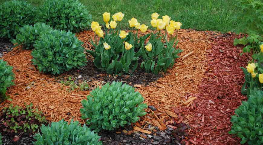 Мульча крупной фракции. Некоторые используют яркую мульчу для окантовки посадок. Это достигается путем удаления травы с внешних краев грядок, бордюров и дорожек, а затем заполнения их мульчей. Такой тип ограждения обеспечивает гибкость в случае, если существующая площадь со временем изменяется по размеру или форме. Используя кору крупной фракции, не забывайте о защите сада от грызунов – вы ведь им устроите под щепой настоящий спа-комплекс.