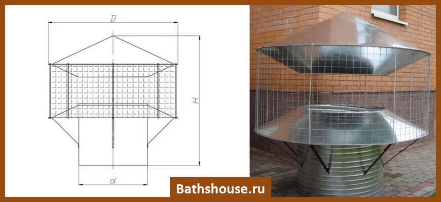 - защищает трубу от попадания посторонних предметов, таких как листья, мусор или птичьи гнезда;