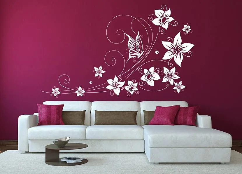 Более упрощенный вариант для тех, кто не обладает навыками росписи – декорирование стен с помощью трафаретов и интерьерных наклеек. Своими руками можно создать целостные художественные композиции в цветочной, абстрактной, геометрической и этнической тематике.