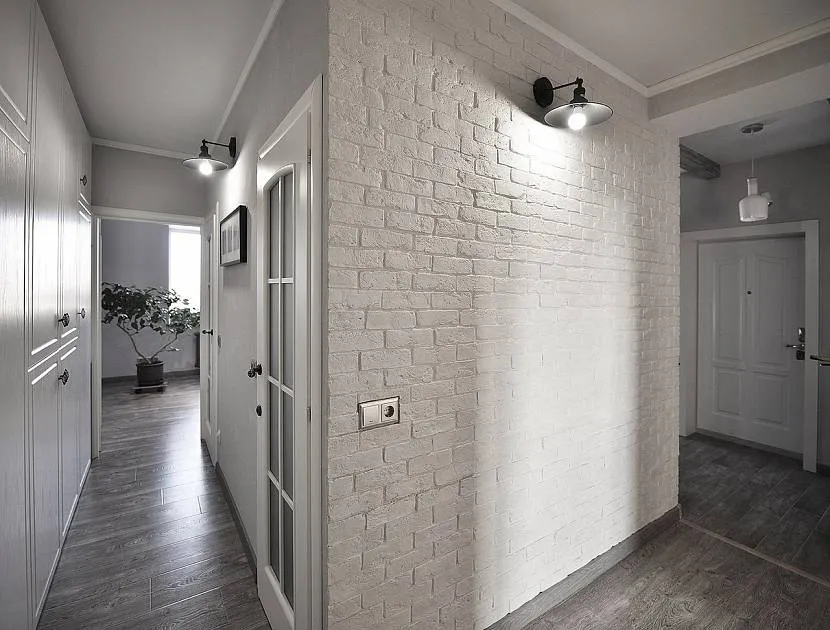 Окрашенная стена прихожей из необработанного кирпичаИсточник kraski-net.ru