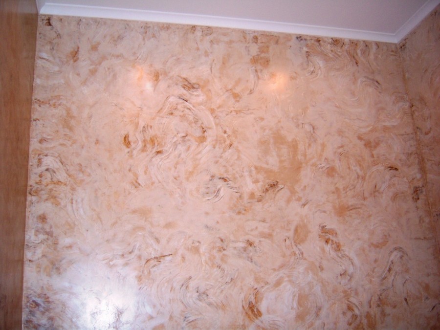 Встречаются варианты, имитирующие мрамор и оникс. Нанесение осуществляется слоями.