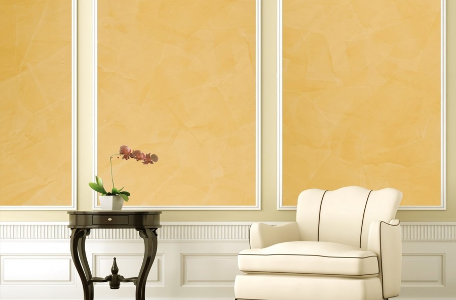 - для создания эффекта полированного мрамора на стене, используется венецианская штукатурка. Она наносится резиновым шпателем несколькими тонкими слоями. Каждый из слоев наносится касательными движениями и разными шпателями, благодаря этому слои накладываются в разных направлениях, а отраженный в них свет создает эффект свечения. Закрепляется финишный слой матовым лаком или воском;