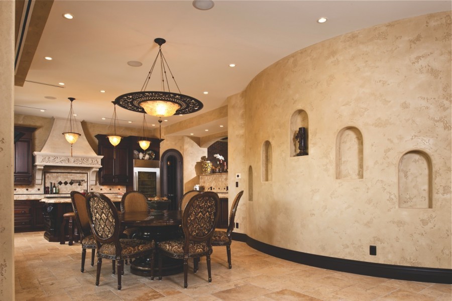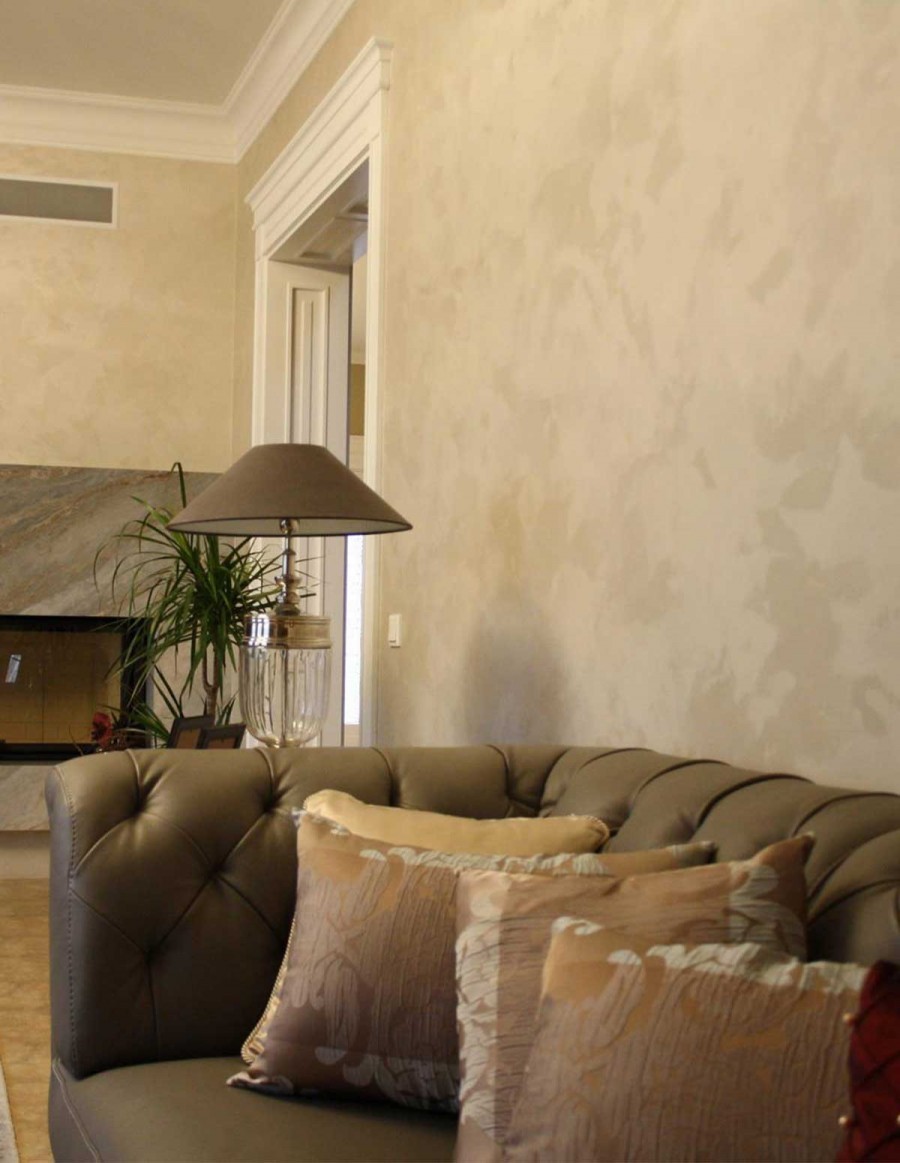В последнее время очень часто применяется для декорирования жилых помещений. Штукатурку можно сочетать со всевозможными материалами и внедрять в уже существующие стили. Отлично дополнят такое покрытие дерево и камень, сталь, стекло. Прекрасно смотрится на колоннах и нишах.