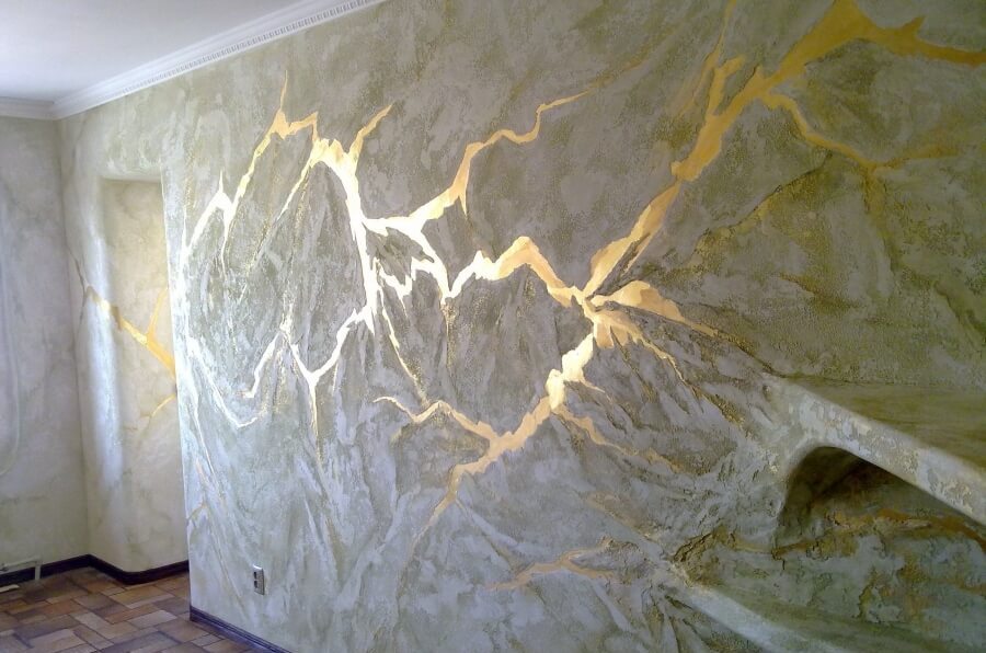 Роскошные эффекты достигаются благодаря созданию ощущения, что стены из натурального природного камня: малахита, мрамора, лазурита. который словно покрыт дымкой и прожилками. Все это рождает иллюзию простора, торжественности, дороговизны. Венецианская штукатурка делится еще и на подразделения: рельефная, гладкая, блестящая, матовая, золотистая, кракелюр (эффект старения) и другие.
