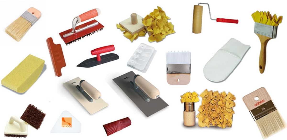 При работе с декоративным бетоном для стен потребуются инструменты и их аналоги. Уже указывались шпатель и распылитель в ходе подготовки, бетономешалка либо дрель с насадкой миксер – при «замесе» штукатурки. Для нанесения оснащение нужно выбирать в зависимости от техники, текстуры материала. Могут понадобиться мастерок, шпатель, кисть, смотря какая структура планируется.