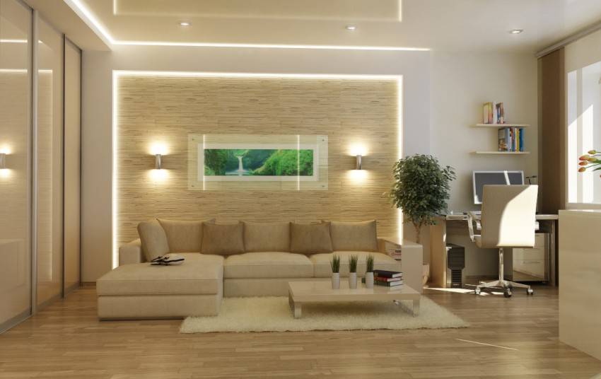 При использовании подсветки в нише, в помещении создается особая атмосфера. Обычно это помещения гостиной или спальни, где приветствуется освещения различной интенсивности.