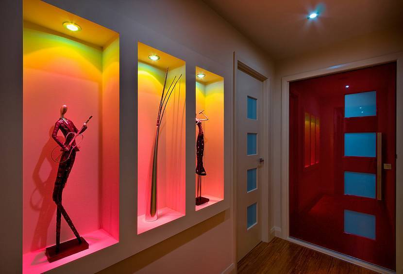 Так же не лишней будет подсветка ниш в узких коридорах, прихожих или лестничных пролетах внутридомовых лестниц.